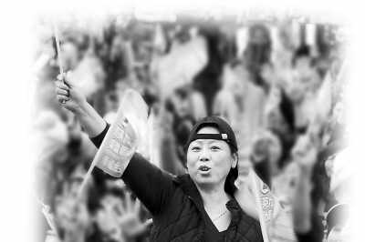 1月14日,国民党“开票之夜”会场上,有民众高呼“冻蒜”(当选)。 人民日报记者 任成琦摄