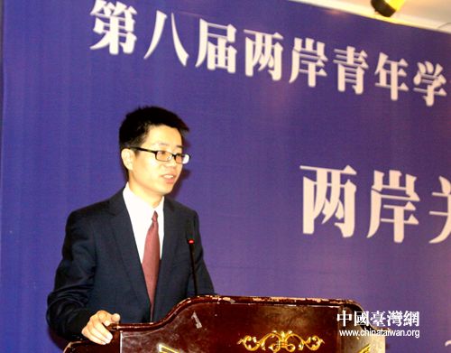 第八届两岸青年学者论坛今日在广西南宁召开,河南师范大学博士后王鹤亭在论坛上发言。(中国台湾网 李杰 摄)