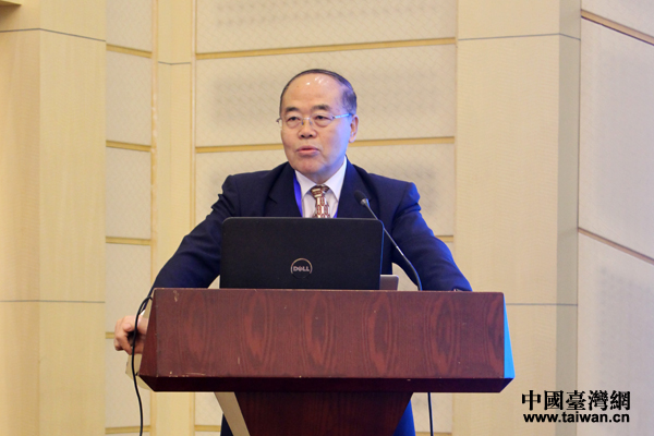 全国台湾研究会常务理事、上海国际问题研究院特聘研究员周志怀发表主题演讲。(中国台湾网 张洁 摄)