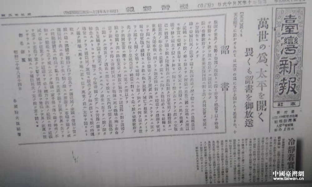 附带言之,当年从广播里听到天皇声音的人都说听到的是“沙哑的玉音”,沙哑应是播音效果的问题。2015年8月15日我们听到日本重新播放的《终战诏书》,日本天皇虽非深刻反省悔罪,还是认罪降伏,声音并不沙哑。(作者汪毅夫系厦门大学台湾研究院讲座教授、全国台湾研究会副会长)