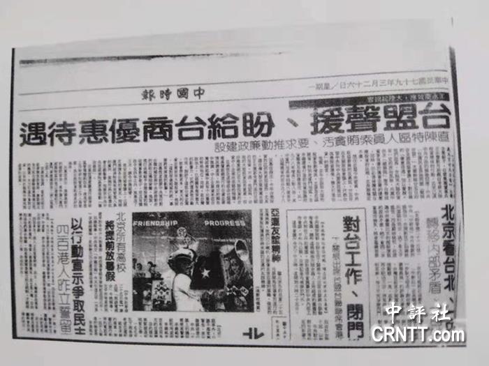 图二,台湾《中国时报》(1990年3月25曰)剪影。(图片来源:香港中评社资料图)