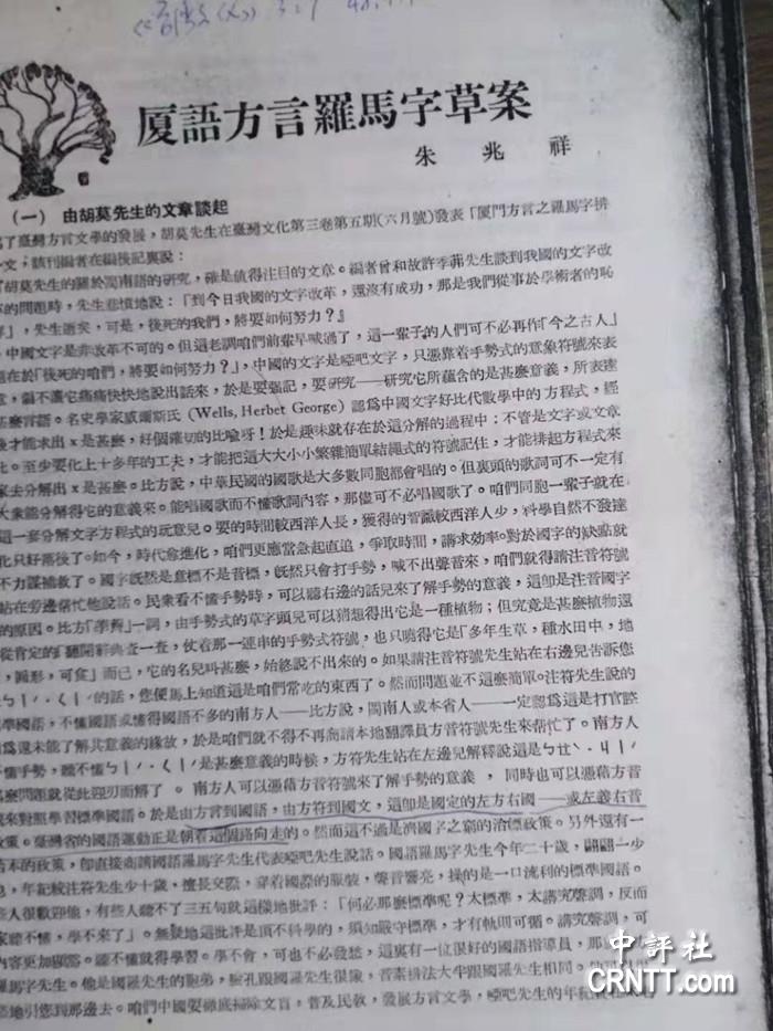 图一,朱兆祥刊于《台湾文化》的《厦语方言罗马字草案》(来源:汪毅夫提供)