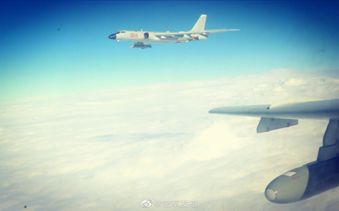 日前,解放军轰-6K携带导弹飞行。(图片来源:@空军发布)