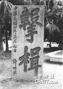 图一,许世英书《击楫》碑(来源:香港中评网)