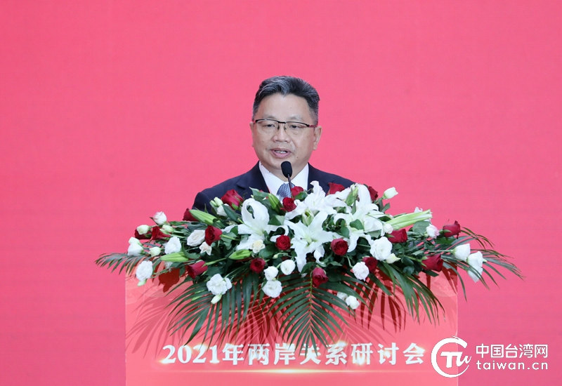 全国台湾同胞联谊会副会长杨毅周在2021年两岸关系研讨会上发言。(中国台湾网 尹赛楠 摄)
