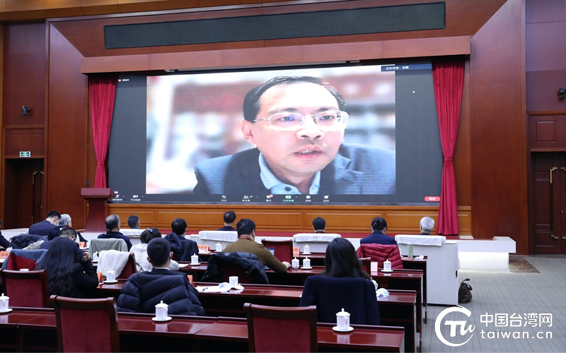 厦门大学台湾研究院院长李鹏通过视频连线方式进行发言。(中国台湾网 尹赛楠 摄)