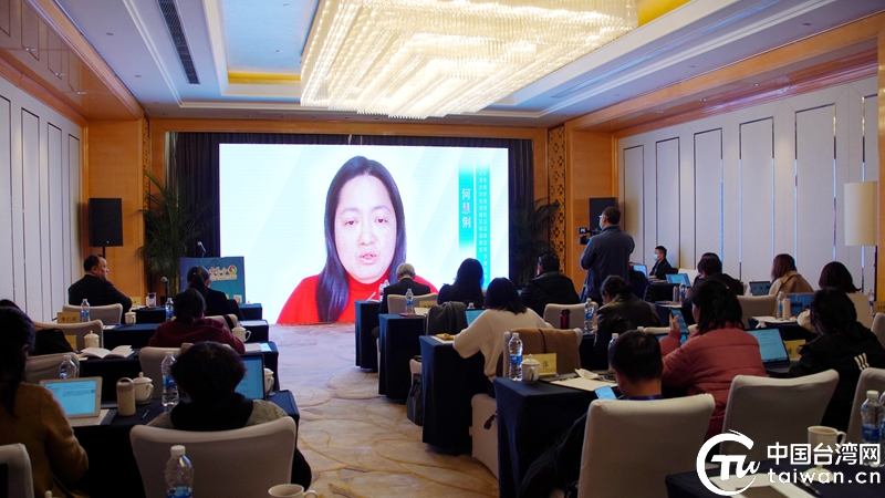 天津大学台湾研究所副所长、中华两岸新时代交流协会学术研究中心主任何慧俐通过视频方式进行主旨演讲。(中国台湾网 符海川 摄)
