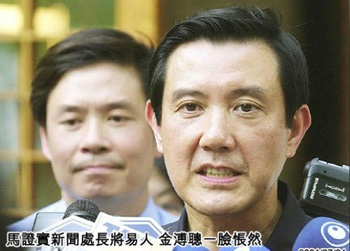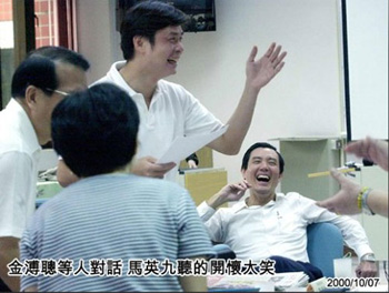 台湾政坛一致同意马英九有三大幕僚:金溥聪、金溥聪、金溥聪。马英九接党主席,金溥聪任秘书长,国民党“马金体制”被视为马英九连任之路的推进器。作为最能贯彻马英九意志的人,对于外界形容他与马英九“同质性很高”,金溥聪则说:马市长曾公开讲,我们其实是不太一样的人。 近日,台湾《联合报》发表一组图片,对马英九金溥聪风雨十年的“金马情”进行了回顾,现照录如下以飨网友。