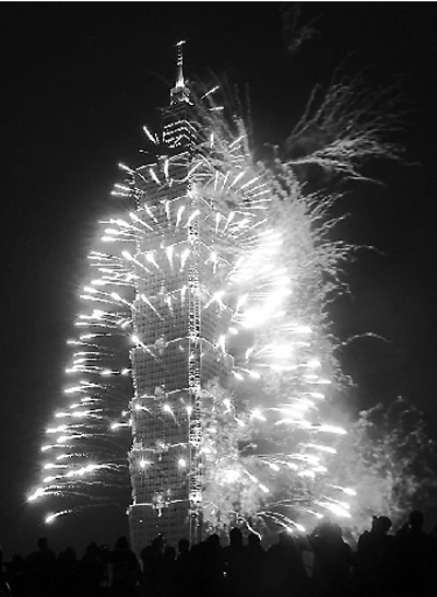 台北101大楼烟火秀已经成为岛内迎接新年的重头戏。101今年砸下3000万元(新台币,下同)设计了18款烟火样式,烟火持续202秒。台北林小姐表示,连续4年,每年都在101跨年。据统计,今年101烟火秀吸引80万人一同跨年。