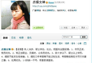 早在2月就已见报的“贞操女神”涂世友,日前又因“苛刻”的微博征婚内容再次成为关注焦点。要求“党员、公务员、处男优先”,还提出“婚后三年考察期不能过性生活”。此微博一出,议论纷纷,这样的贞操观和这样近乎荒诞的征婚要求,俨然成为大众娱乐的闹剧。