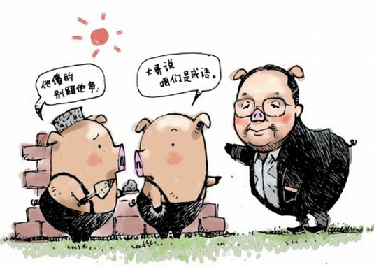 真是巧了,杜正胜当年就是因为要拍陈水扁马屁硬说“三只小猪”是成语而“红”遍两岸。那时他刚为陈水扁的“罄竹难书”作了新解,正在舆论的风口浪尖,却还能如此自信的解读“三只小猪”:“如果看到小朋友写作业太草率,我就可以对他说,你不要像三只小猪的老大,这就是运用成语。”真是令人佩服!