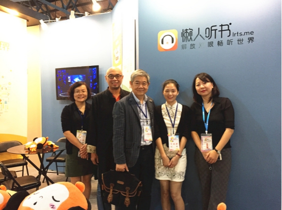 视纳华仁文化传播有限公司营运长林乐群(左三)莅临懒人听书展台
