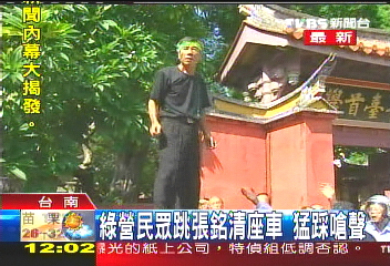 当张铭清准备乘车离开时,有绿营民众甚至跳上张铭清的乘座的车顶狂踩,试图阻止张铭清离开。
