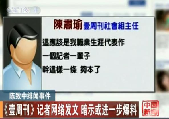 台媒:壹周刊爆陈致中召妓报道内容疑点多