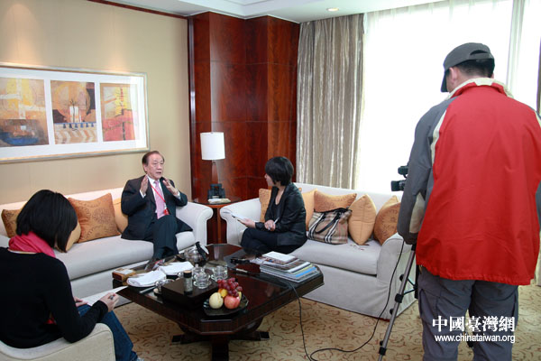 台湾新党主席郁慕明28日在下榻酒店接受中国台湾网独家图文、视频专访(中国台湾网 钟宝华 摄)