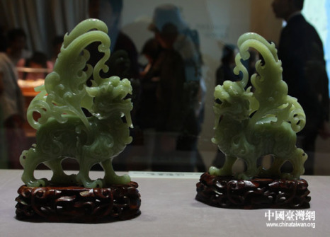 震旦馆展示的玉雕。(中国台湾网 张弛 摄)
