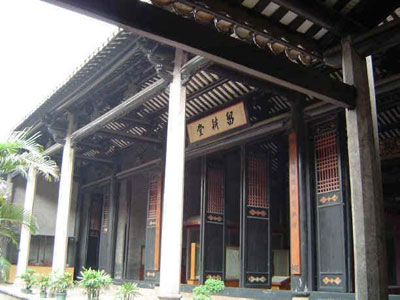 广东民间乡村祠堂建筑设计的典型代表,创建于600多年前。面积有3000平方米。它的平面呈南北长条形,自南向北依次为大池塘、大天街、正门、牌坊、钓鱼台、中座、天井、后座及东、西廊和村祠、形成结构严谨,修饰华丽,规模宏伟的建筑物。