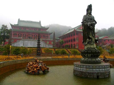 金山因有金山寺而名闻遐迩。金山寺建于东晋,至今已有1600多年历史。原名泽心寺,亦称龙游寺。清康熙帝曾亲笔题写"江天禅寺",但自唐以来,人们皆称金山寺,是中国佛教诵经设斋、礼佛拜忏和追荐亡灵的水陆法会的发源地。金山寺寺门朝西,依山而建,殿宇栉比,亭台相连,遍山布满金碧辉煌的建筑,以致令人无法窥视山的原貌,因而有"金山寺裹山"之说。