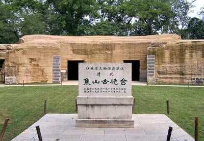 江苏镇江市焦山东麓,树林茂密,怪石嶙峋,八座炮台成马蹄形排列,炮口面对大江,这就是著名的焦山炮台。