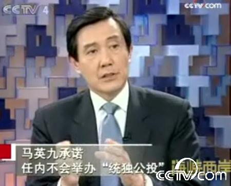 央视网消息(海峡两岸):马英九7日接受媒体专访时表示,他在任内不会举办"统独公投"。