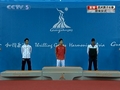 何冲带领两名小孩"放鞭炮"点燃亚运会主火炬