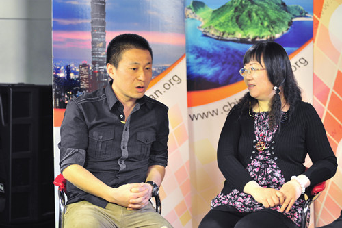 中央人民广播电台旅游栏目资深主持人、记者 陈雅萍(右)、曾单车骑行环岛,赴台个人游达人 汪振(左)做客中国台湾网,谈赴台游感受心得。