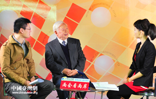 《两岸常用字典》主编李行健教授(中),和人民日报社港澳台采访室记者杜榕(左),做客中国台湾网聊一聊两岸用语的差异和融合。