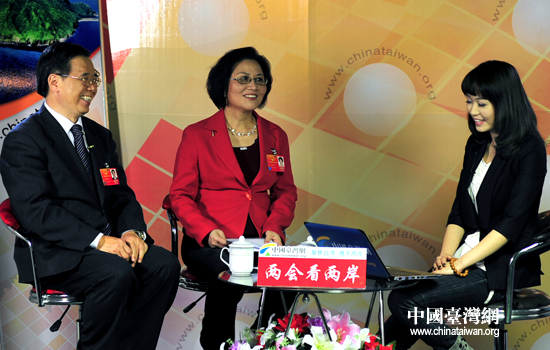 9日,十一届全国人大台籍代表陈蔚文(左)、陈云英(中)做客中国台湾网,谈履职感受。(中国台湾网 田云鹏 摄)