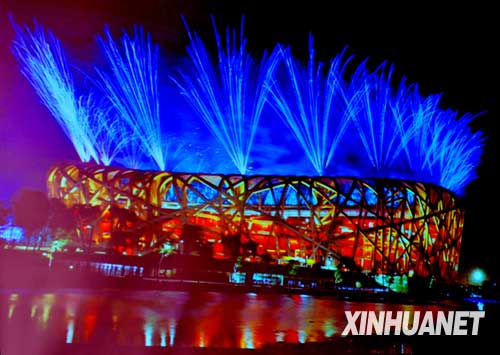 新华网北京7月23日电(记者 陈竞超 夏小鹏) 记者从7月23日举行的奥组委发布会上了解到,8月8日晚,配合奥运会开幕式文艺表演和仪式程序的进程,在国家体育场顶部、奥林匹克中心区、奥林匹克森林公园、城区中轴线和居庸关长城等处将燃放眩目多彩、造型各异的焰火,营造欢庆、热烈的奥运气氛。总长度大约20分钟。