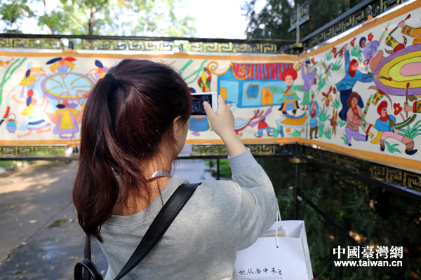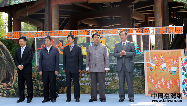 中国台湾网9月30日北京讯 (记者 刘莹) 9月30日上午,为期5天的“她从画中来——贵州水城农民画恭贺祖国66岁华诞走进金色北京画展”在中华民族园开展。一幅长逾千米的土布农民画长卷及100余幅色彩绚烂的农民画以它特有的方式,向新中国66岁华诞献礼。