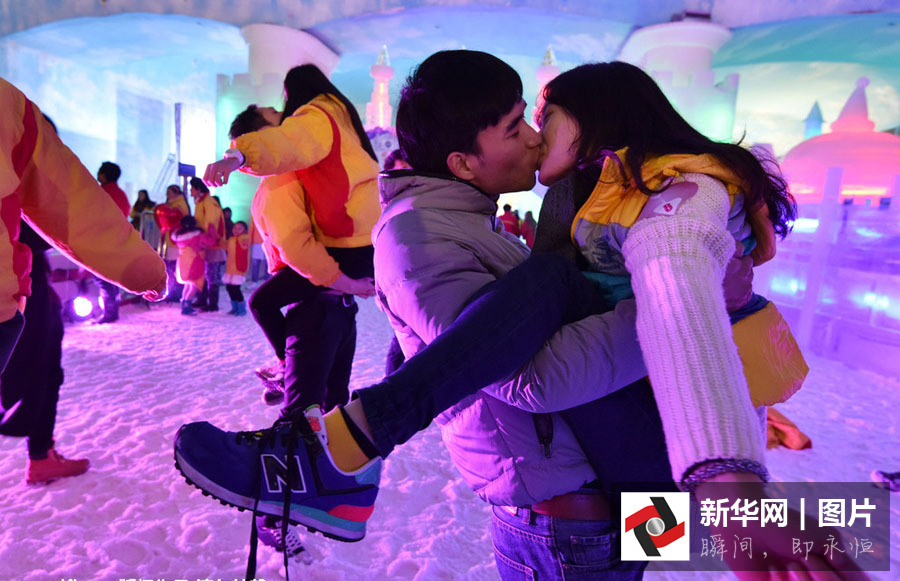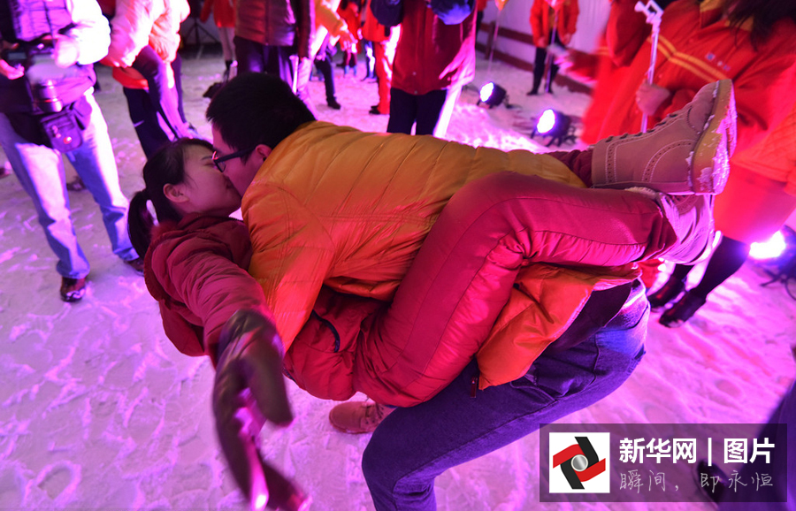 深圳冰雪热吻大赛 情侣冰天雪地里秀奇葩吻姿