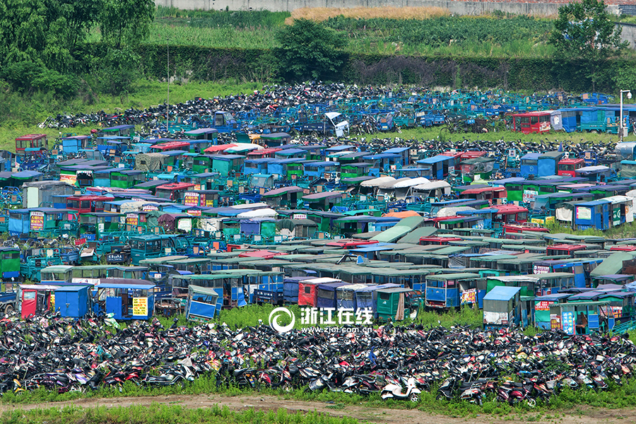 杭州沈半路旁,上万辆交警部门查扣的违规车辆场面壮观。