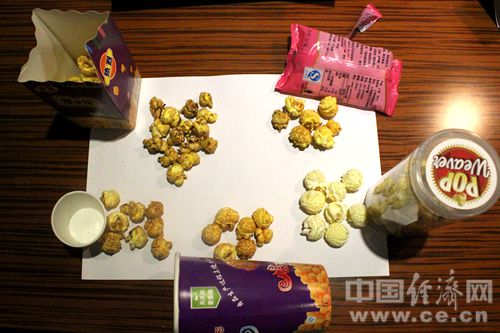 部分参展企业爆米花产品对比。中国经济网记者韩肖摄