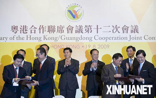 8月19日,香港特区行政长官曾荫权与广东省省长黄华华等在签约仪式上。新华社记者 吕小炜 摄