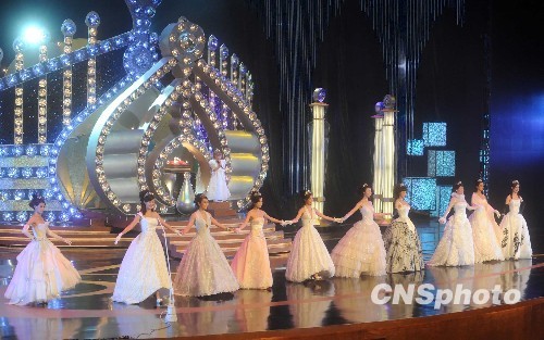 八月二十二日晚,二零零九年香港小姐竞选决赛在香港红磡体育馆隆重举行。十位候选佳丽在风靡全球的女童星Connie Talbot歌声中出场揭开选美赛夜序幕。 中新社发 邓庆乐 摄