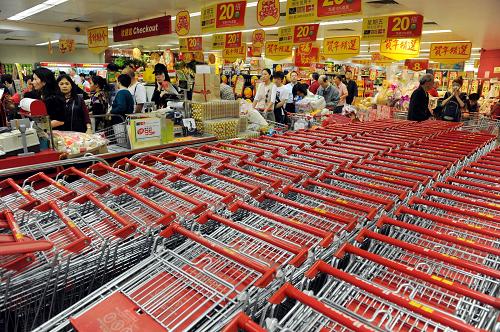 2月11日,香港铜锣湾超市排起购物长队。春节临近,香港商家多措并举,吸引大批内地居民赴港休闲购物、置办各色年货。新华社记者 宋振平 摄