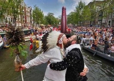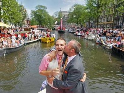 中新网8月4日电 荷兰阿姆斯特丹市长科恩8月1日为五对同性恋人主持婚礼,掀起该市支持同性恋者年度水上大游行的高潮。