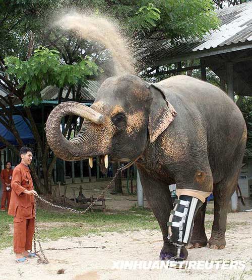 今年48岁的“摩塔拉”1999年在泰国和缅甸边境密林中运木头时不幸踩上一枚年代久远的地雷,在接受左前腿截肢手术两年后,“摩塔拉”有了一条临时性以帆布为材料的假肢。专家在“摩塔拉”首次假肢手术中使用了足以放倒70人的麻醉剂,这被载入世界吉尼斯纪录。
