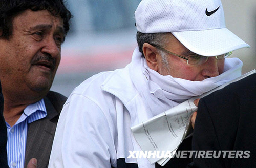 8月20日,在英国苏格兰的格拉斯哥机场,制造洛克比空难的利比亚特工迈格拉希(右)准备乘专机离开。新华社/路透