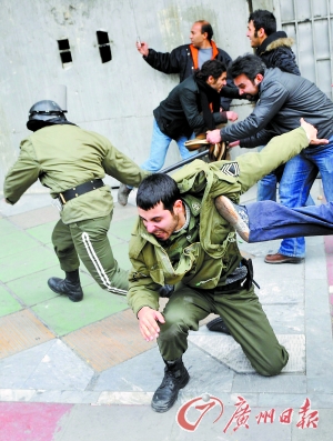 去年伊朗总统大选后抗议者与警方发生冲突的图片。