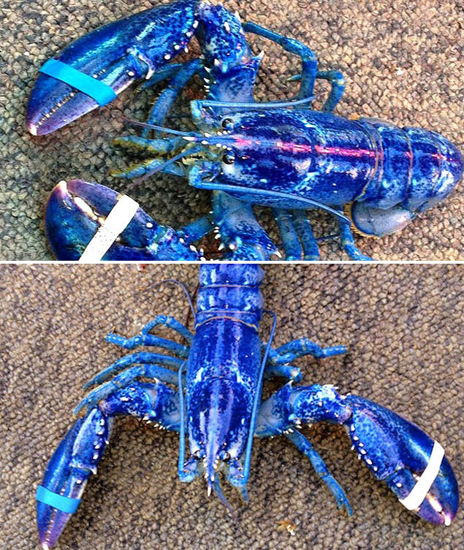 一名加拿大渔民在大西洋海域捕获一只罕见蓝色龙虾,据称,蓝色龙虾出现的概率为200万分之一。据这位51岁的渔民称,“我已经从事龙虾捕捞已经33年了,捕获到蓝色龙虾这还是首次。”据悉,蓝色龙虾是基因突变的结果,出现概率为200万分之一。