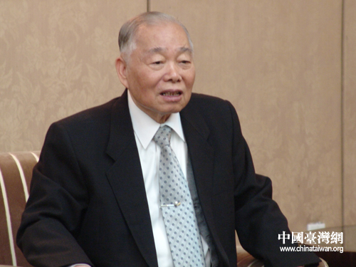 台湾海峡两岸和平统一促进会会长郭俊次在座谈会上发言 。(摄影:赵颖芳)