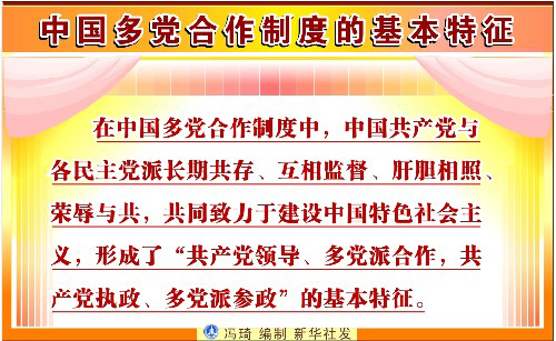 白皮书说,在中国多党合作制度中,中国共产党与各民主党派长期共存、互相监督、肝胆相照、荣辱与共,共同致力于建设中国特色社会主义,形成了“共产党领导、多党派合作,共产党执政、多党派参政”的基本特征。中国多党合作制度在中国的政治和社会生活中显示出独特的政治优势和强大的生命力,发挥了不可替代的重大作用。