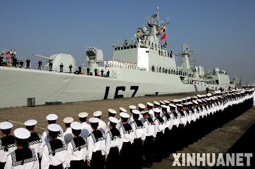 11月21日,“深圳”舰驶离湛江港。当日,应日本海上自卫队的邀请,中国海军“深圳”号导弹驱逐舰从广东湛江港启航,将于11月28日至12月1日对日本进行友好访问。此次访问是为纪念中日邦交正常化35周年而进行的一次重要活动,是中国海军舰艇历史上首次访问日本。 新华社记者 查春明摄
