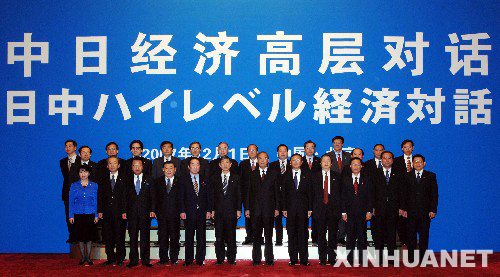 12月1日,首次中日经济高层对话在北京人民大会堂举行。这是国务院副总理曾培炎与日本代表团成员合影留念。 新华社记者陈树根 摄