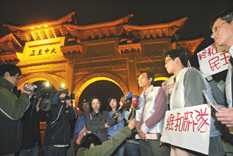 奉当局指示到现场的警察,被问到要如何处理拆除“大中至正”牌楼的问题时,自己也觉得无奈地说,他们目前是听“教育部”的,至于是否会和准备逮捕“破坏古迹现行犯”的台北警察发生自家人冲突,他们却话中有话的说:“反正是来吃便当的!”