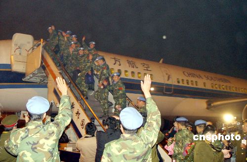 二十三日晚间二十一时许,中国赴苏丹达尔富尔维和工兵先遣分队一百三十五名官兵,在郑州新郑国际机场登机启程。 中新社发 李志全 摄
