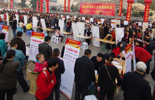 11月5日,重庆农民工专场招聘会在该市40个区县同步举行。此次招聘活动共得到1500多家用人单位的积极响应,为农民工提供7万余个就业岗位,吸引数十万农民工到场参加。 新华社记者 刘潺 摄