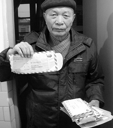 刘有能展示当年的信封。
