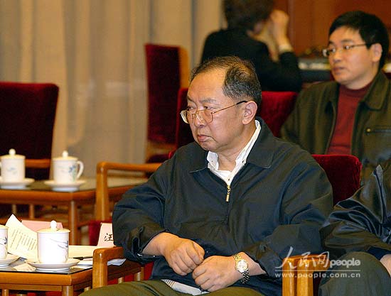 浙江省原省长、人事部原副部长万学远在座谈会上发言。